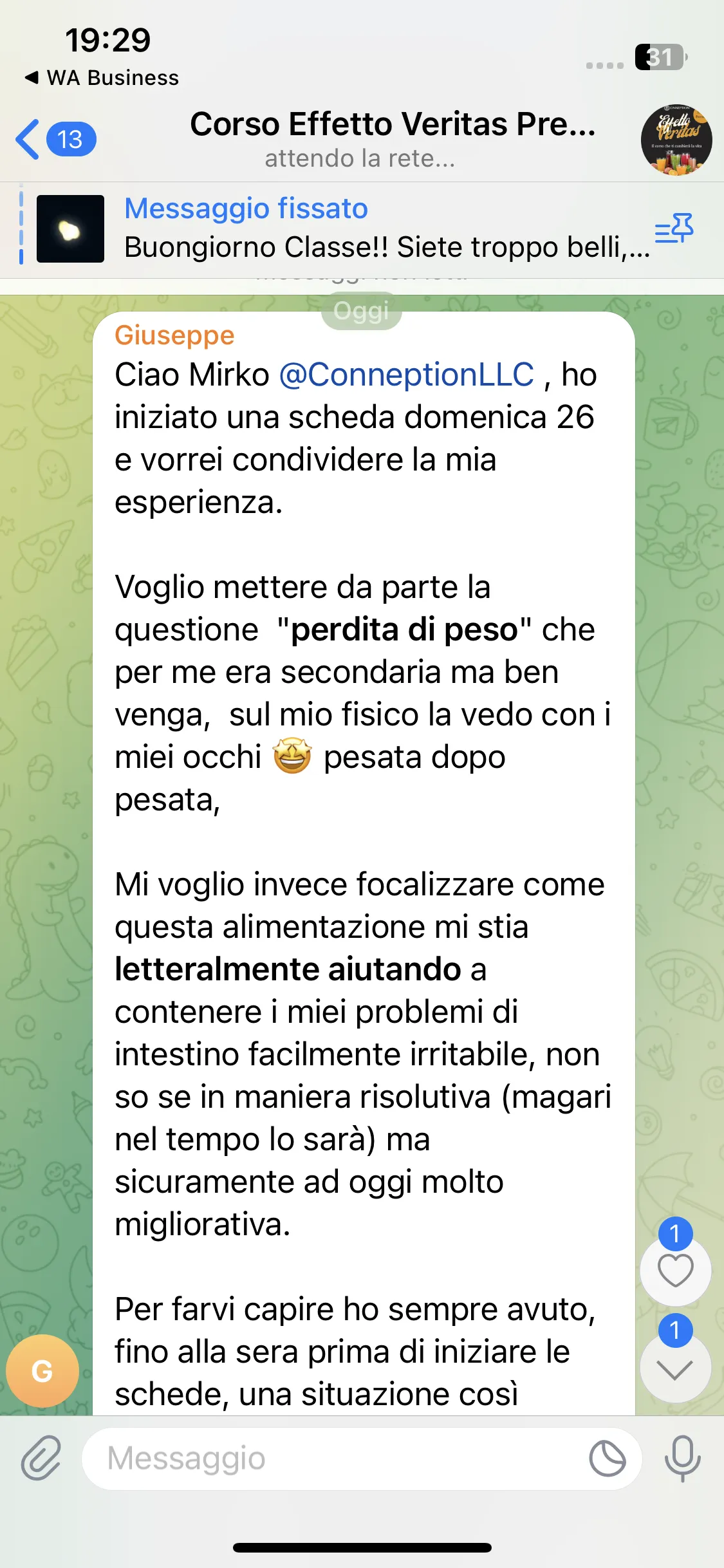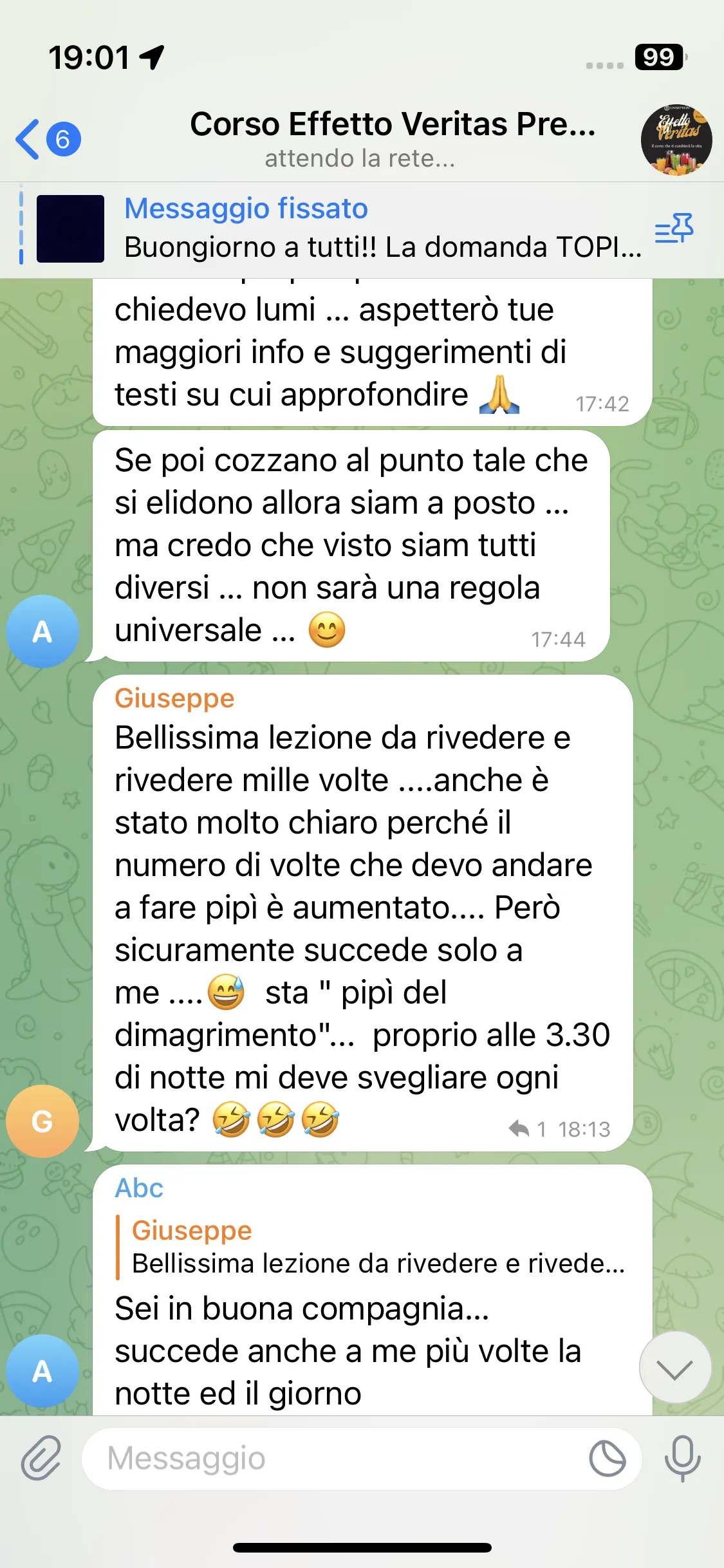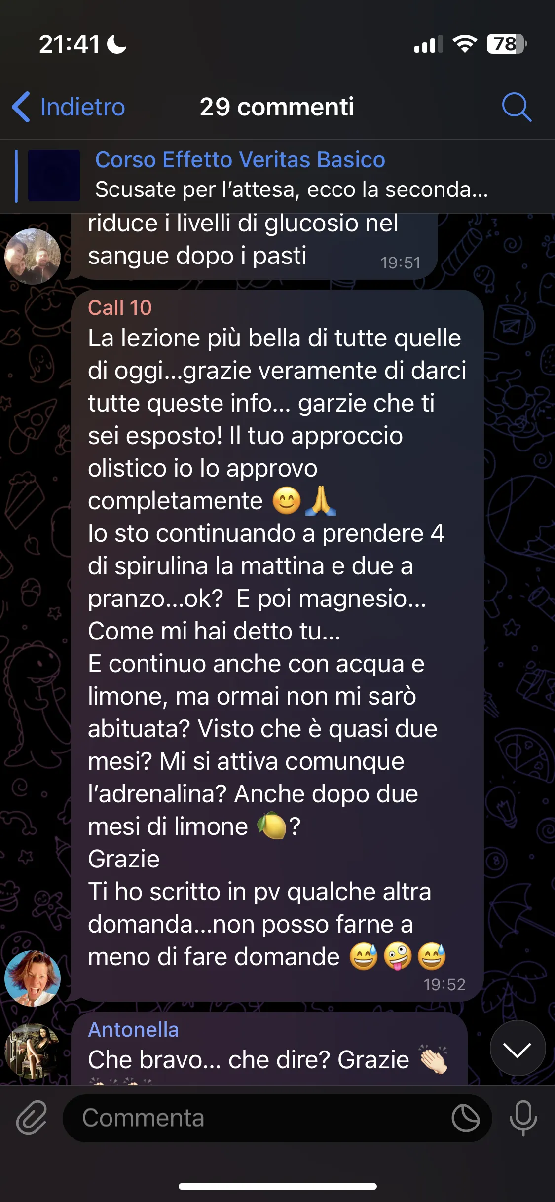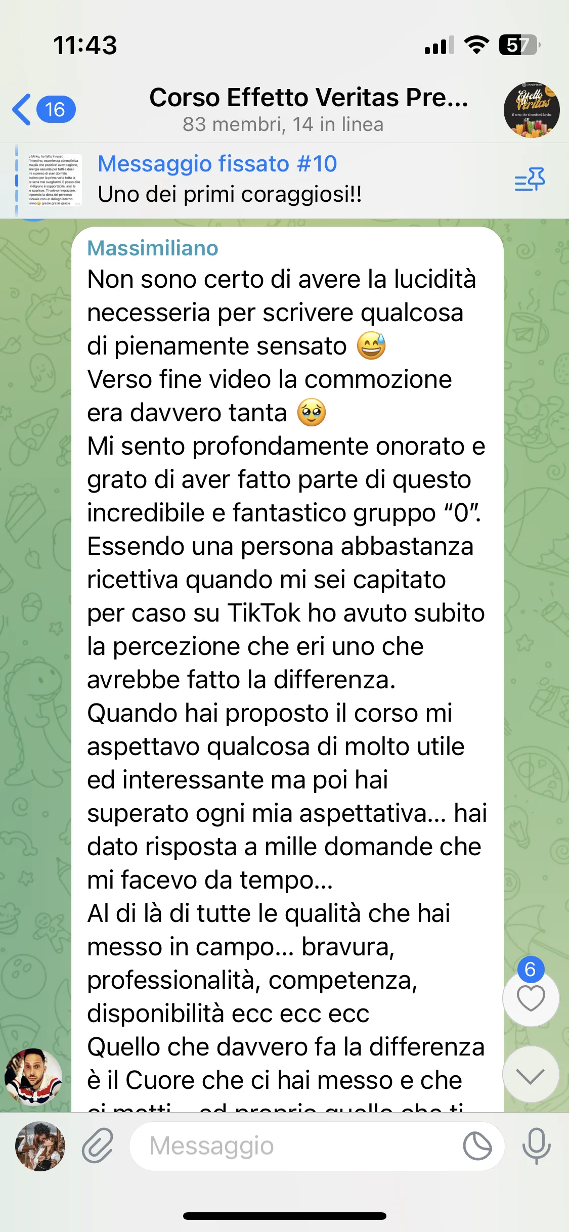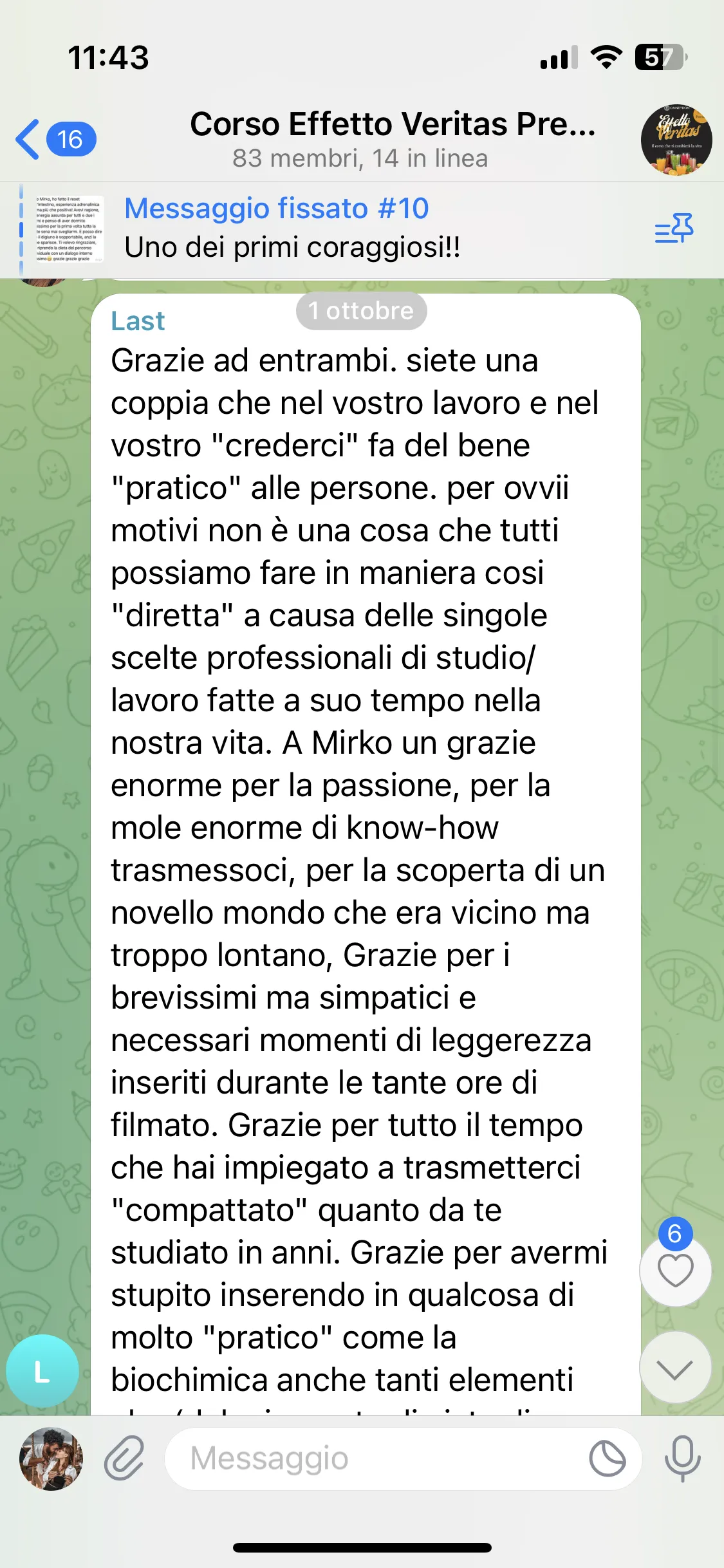 Avevo già seguito i corsi di Mirko, avevo aspettative molto alte e sono state pienamente soddisfatte. Mi porto a casa tanta consapevolezza e strumenti concreti su cui lavorare. Lo consiglio a chiunque abbia un problema fisico o psicologico, perché qui può davvero trovare un aiuto per uscirne.