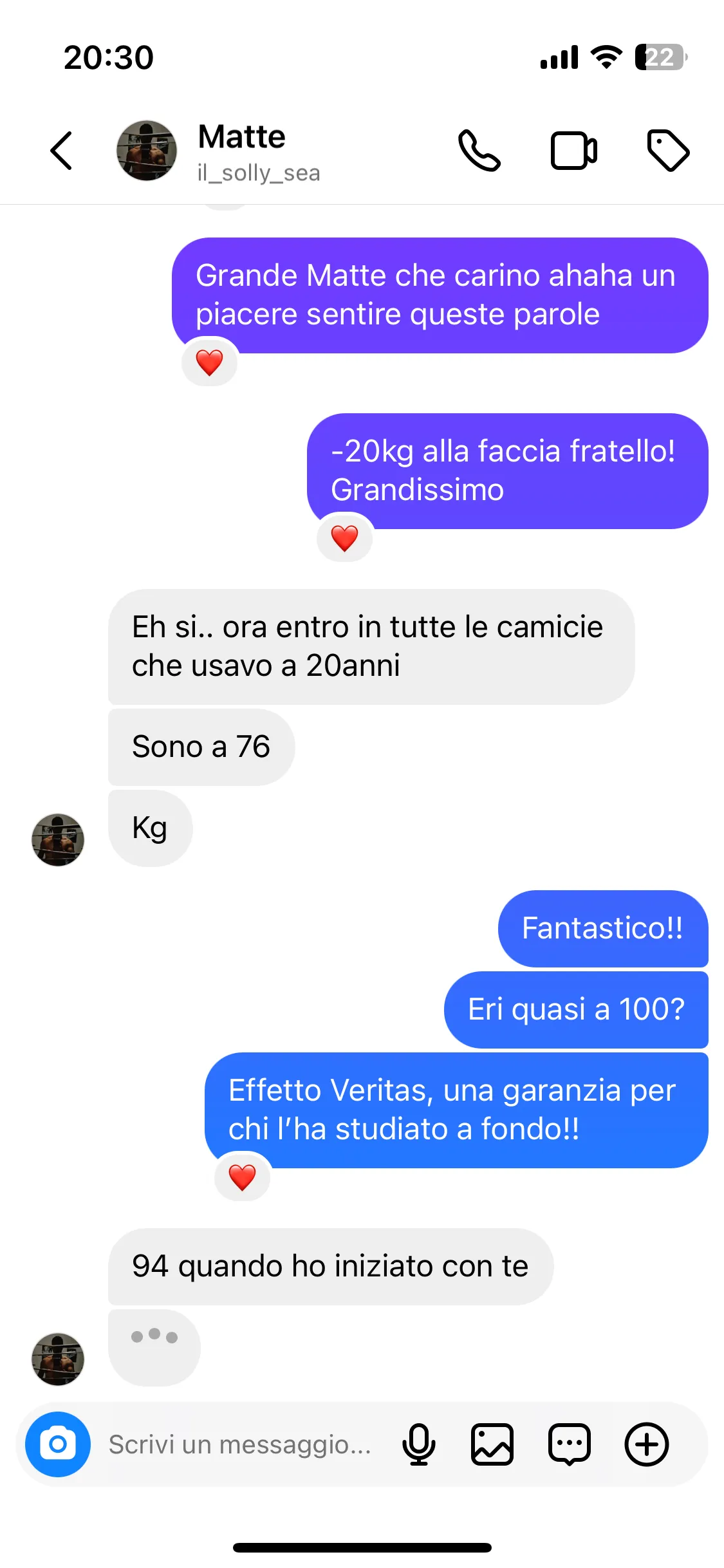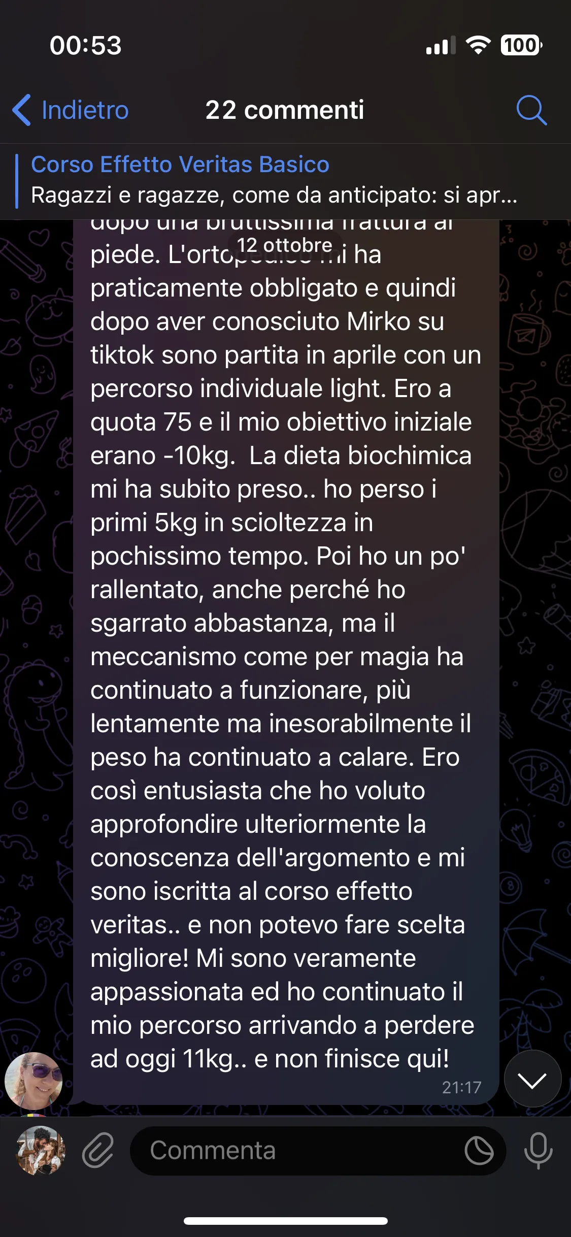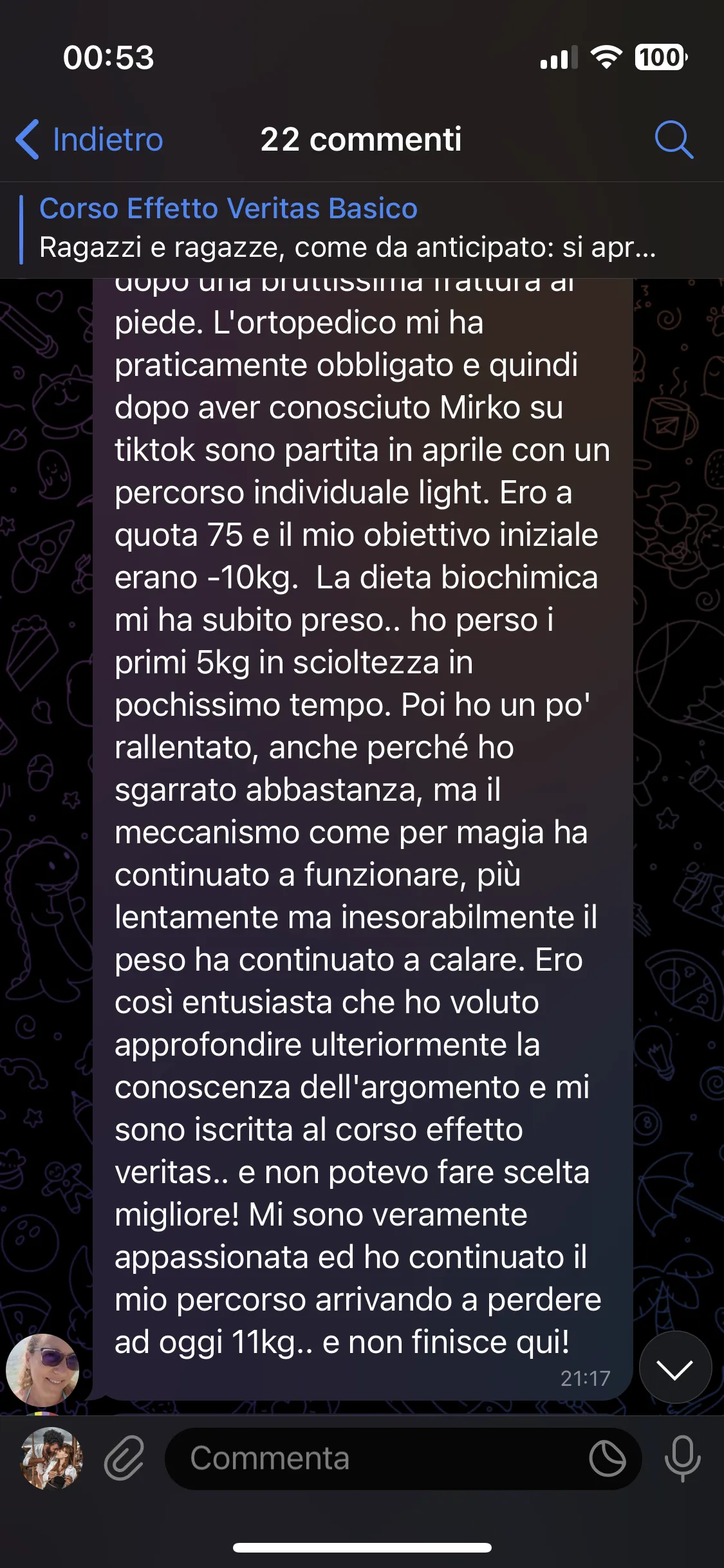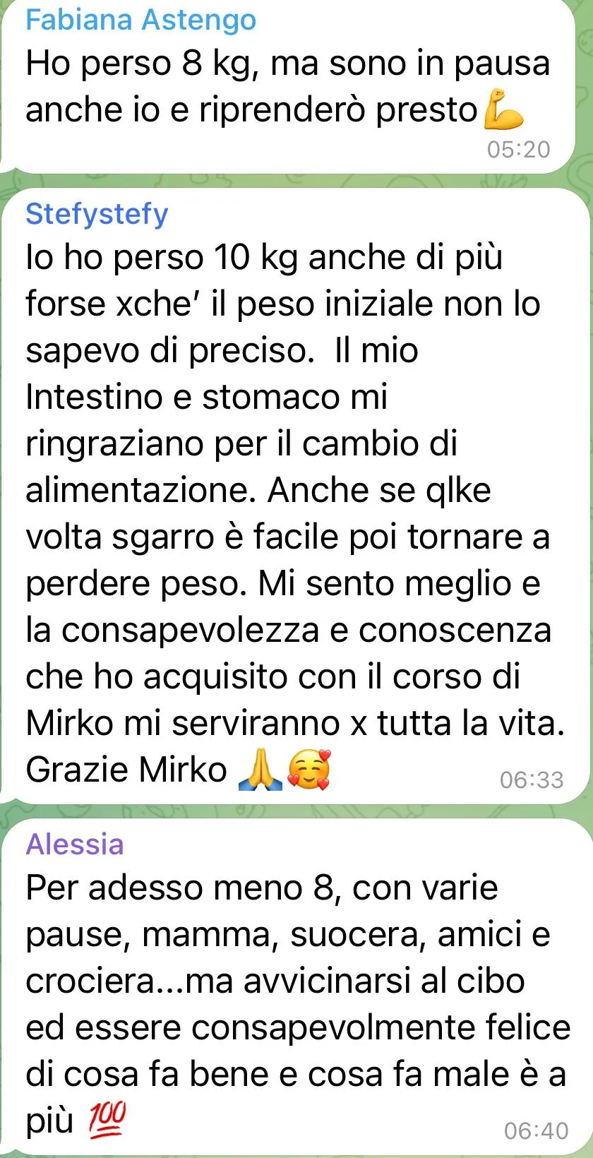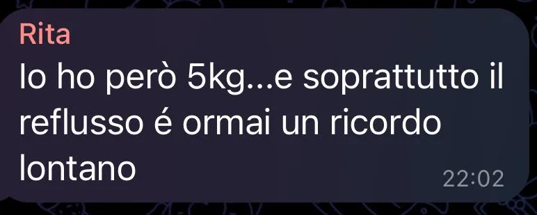 "Ho problemi alla tiroide, prediabete e una malattia degenerativa cronica. Con Mirko ho perso peso e migliorato la mia salute."