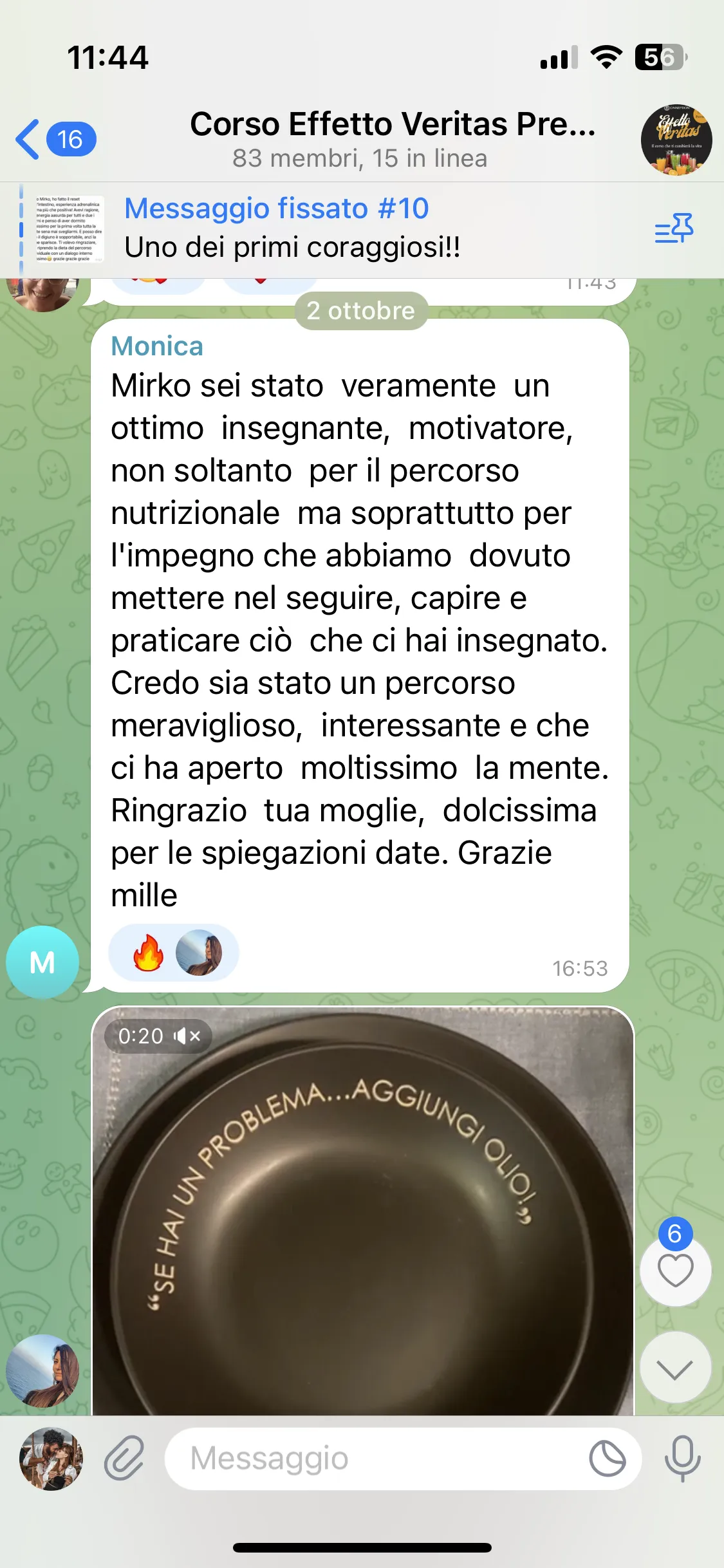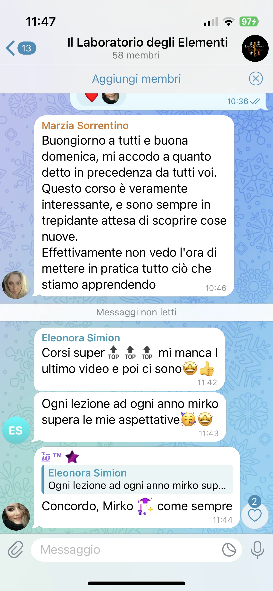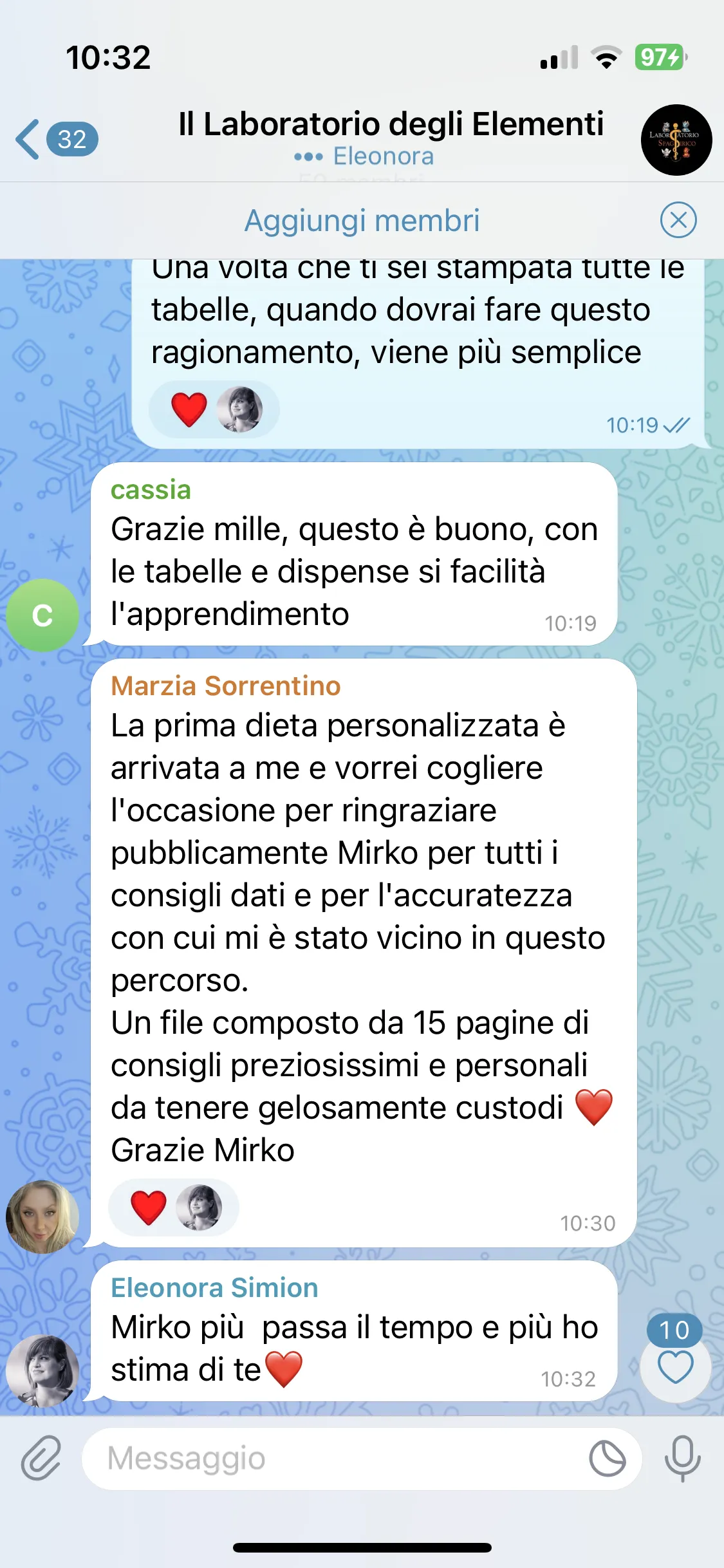 "Conosco Mirko da più di 2 anni e ho seguito i suoi corsi, ogni volta riesce a darmi qualcosa in più. Parteciperò ancora, perché ogni evento mi aiuta a vedere le cose in modo diverso. È un percorso che consiglio a tutti."