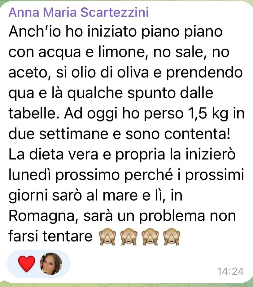 "Sono operata alla tiroide e prendo una pastiglia sostitutiva. Nonostante il mio metabolismo sia diverso, ho perso 9 kg in 34 giorni."