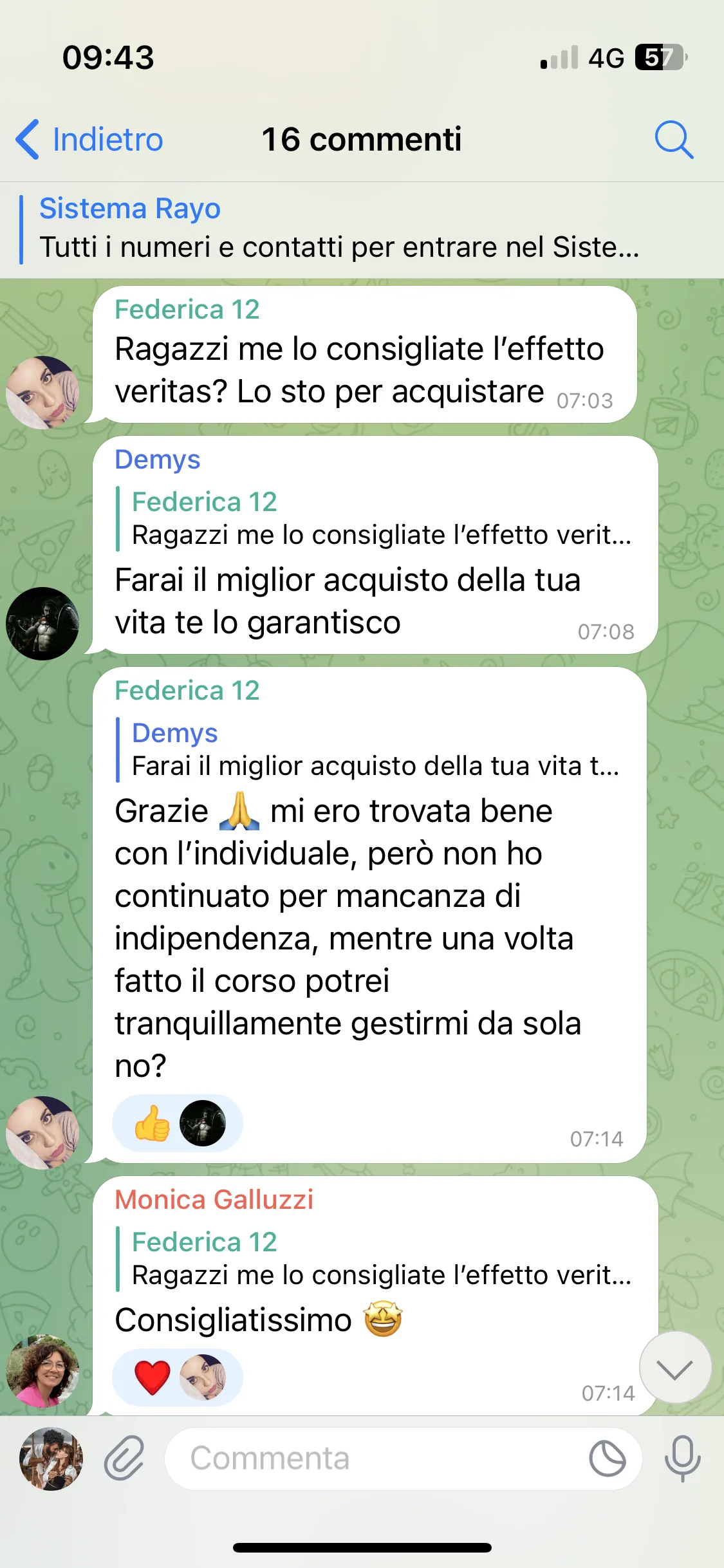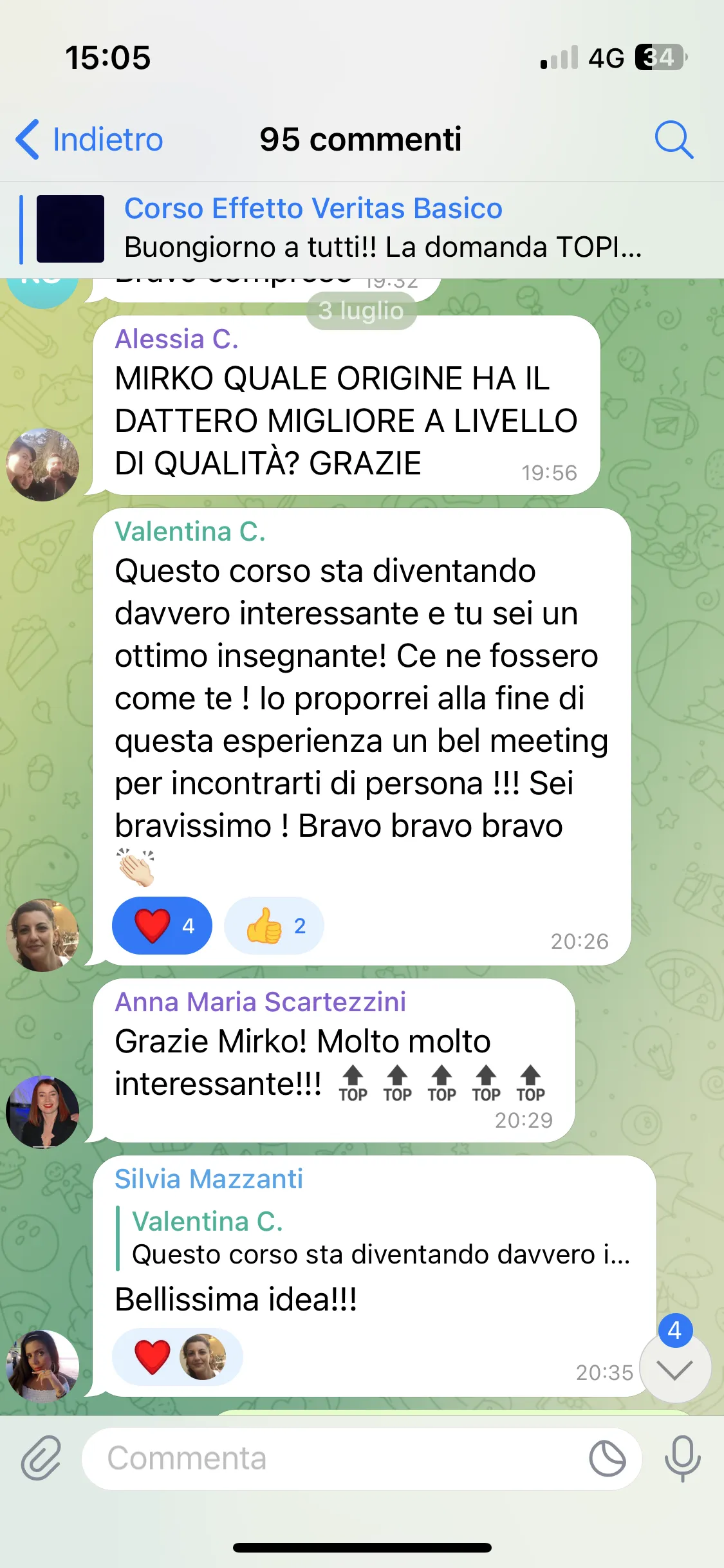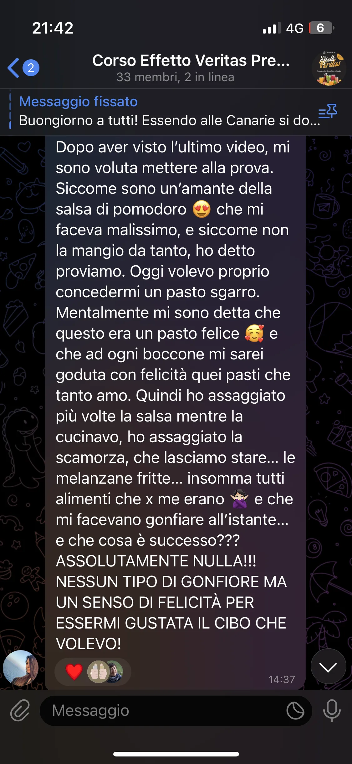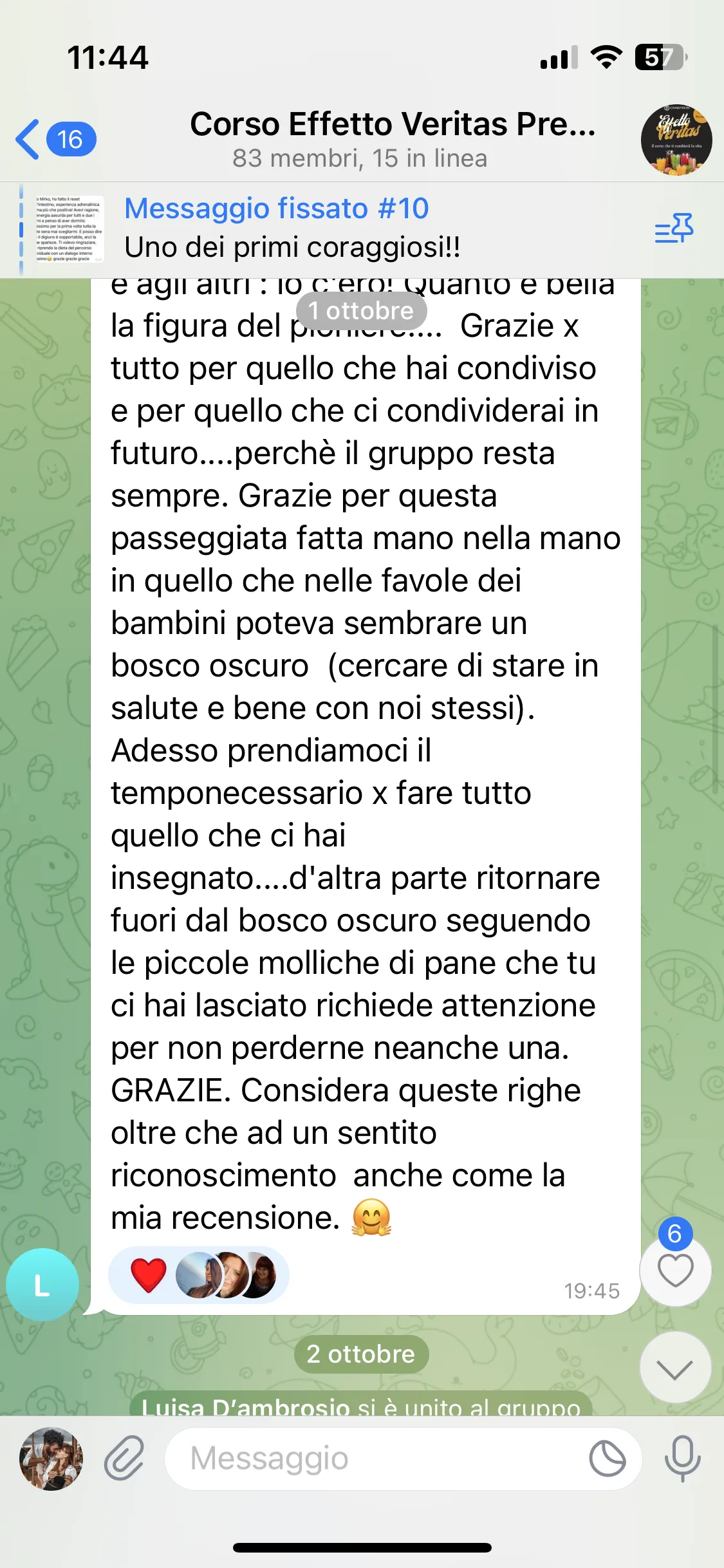 "Dopo aver fatto Effetto Veritas, volevo approfondire. In questo evento ho capito molte cose di me stessa e degli altri. È un’esperienza trasformativa che consiglierei a tutti."