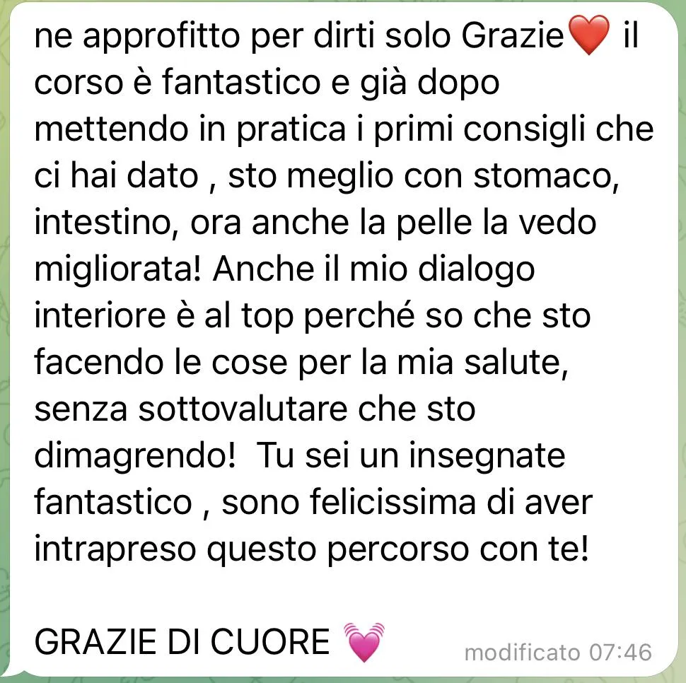 ✔ Esperienza pratica e personalizzata → Non solo teoria, ma strumenti concreti che potrai applicare subito per migliorare salute, relazioni e benessere.